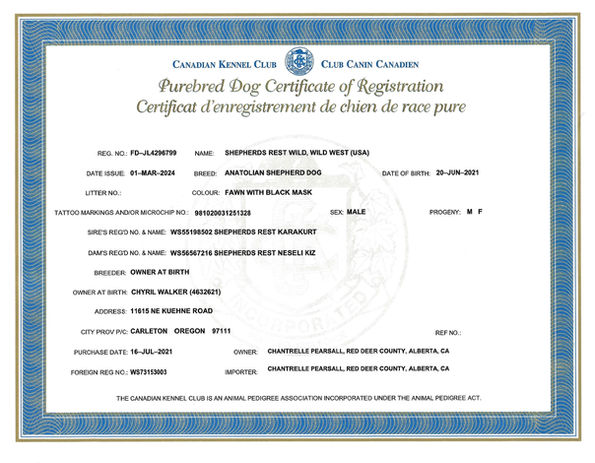 Coming from several Turkish lines, Wiley is a big boy with an intimidating presence. He showed great guardian instincts at a very young age and loves his job. We can fully trust him with any pen on our property and with any livestock we own. Wiley has a social personality and is always happy. He loves accompanying us on walks through the pastures or while we do chores. Despite his size, he is gentle and nurturing towards our kids and baby animals. Wiley brings 8 Turkish lines to our breeding program and future guardians.